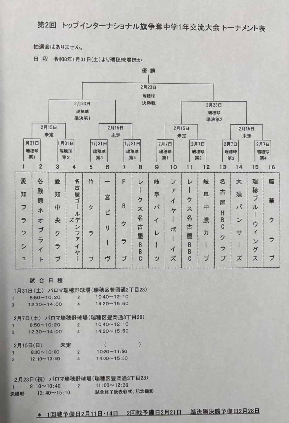 第2回 トップインターナショナル旗争奪中学1年交流大会 組合表